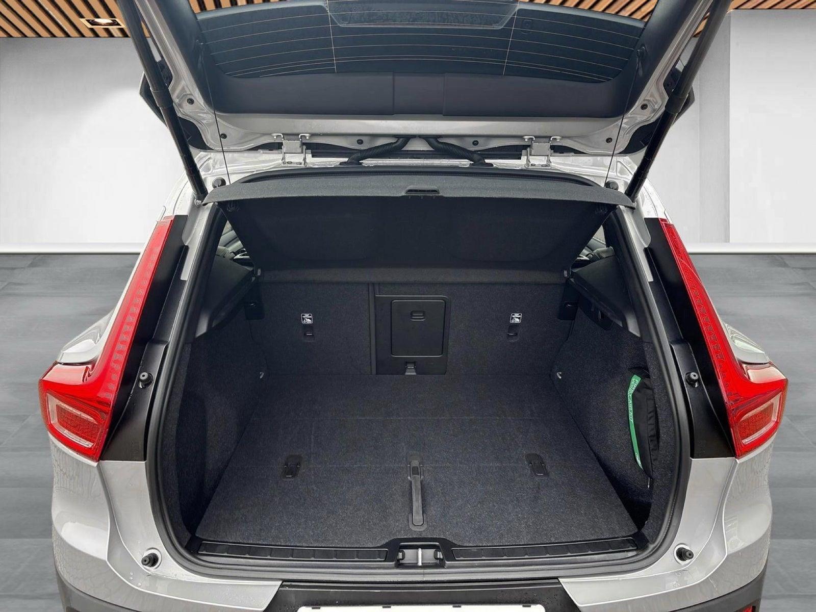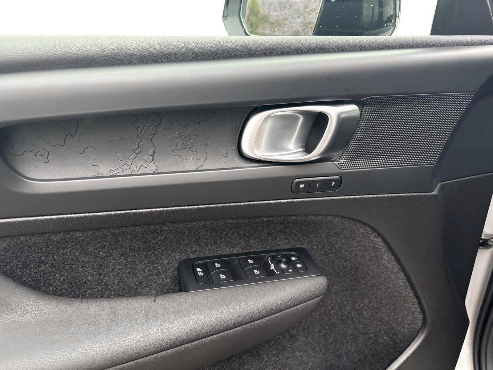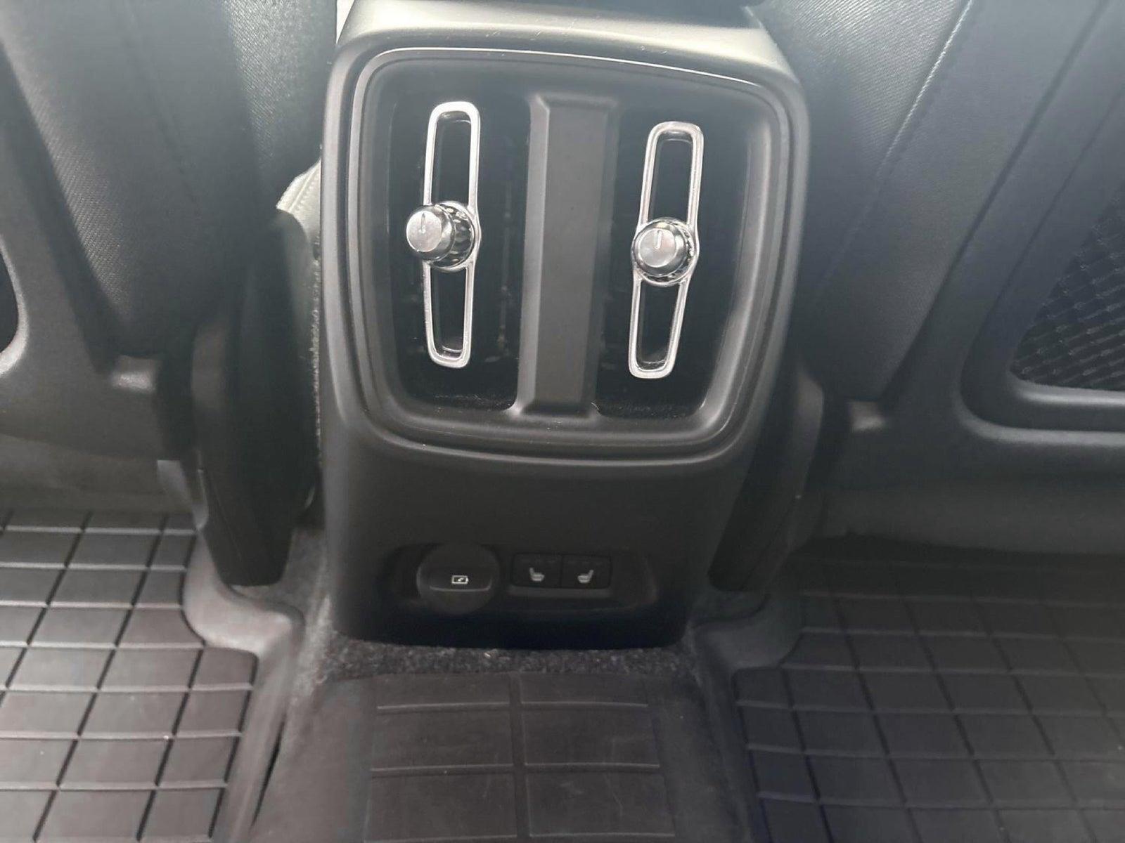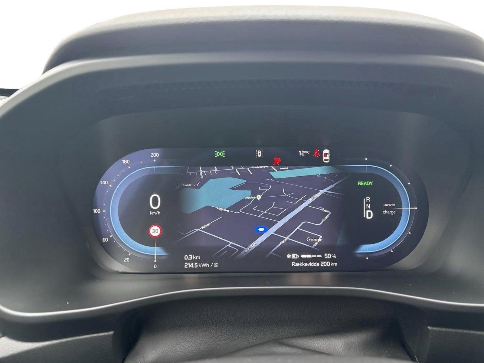 Andet udstyr: 12V stik for, Alarm m/bevægelsessensor, Armlæn for Aut. nedblænd bak/sidespejle, Automatisk bremsning efter kollision, Automatisk klimakontrol, Automatisk oplåsning af døre ved kollision, Barnelås fra instrumentbord, Cruise control, Digital Key, Driver Alert Control, Driver Assistance, Driver Awareness, Dæk reparations kit, Elektrisk kabinevarmer (ReCh), Hig Voltage (HVHA), Elektronisk parkeringsbremse. El-indfældbare sidespejle. El-justerbar lændestøtte ved forstole, 4-vejs. El-styret bagklap. Forlygtespulere. Færdselstavlegenkendelse. Gearknop i læder med kontrastsyning Google Automative Services (GAS). Hill Descent control. Hill start assist. Home safe LED-belysning, Isofix bag (ydre pladser), Ladekabel type 2, mode 3, 3-faset 16A, Lane Keeping Aid, LED kørelys, Thors Hammer Led-lys Active High Beam inkl. aut. op- og nedbl. af fjernlys - LED forlygter m. ABL og AHB, Låsbare hjulbolte, Nøglefribetjening, døre/start, Oncoming Lane Mitigation, Opbevaringsrum under kølerhjelm (31L), Opvarmet rat, Parkeringshjælp for & bag, Bak-kamera, Regnsensor, Sort loftbeklædning, Trådløs opladning af mobiltlf, Varmepumpe, Volvo On Call