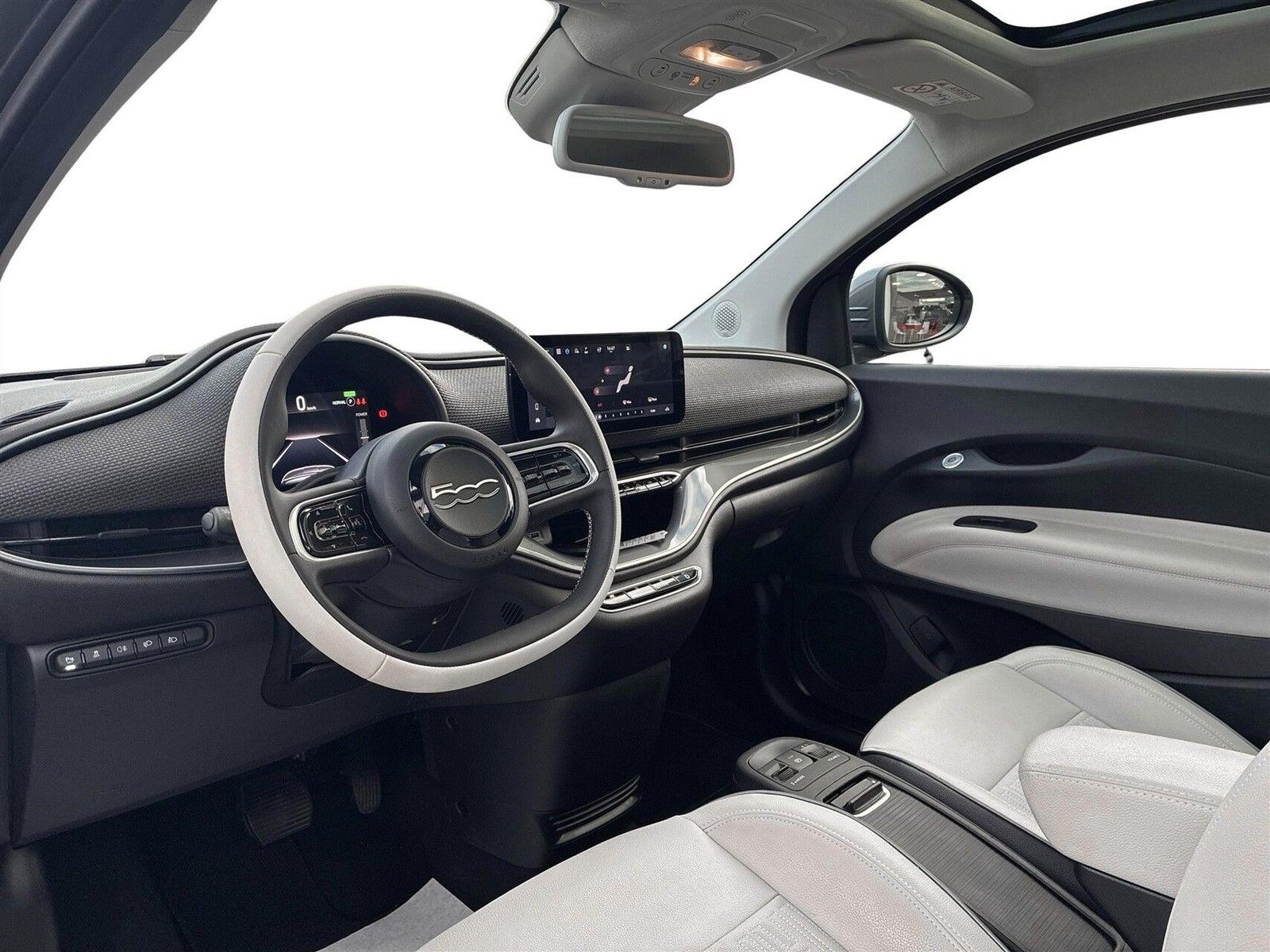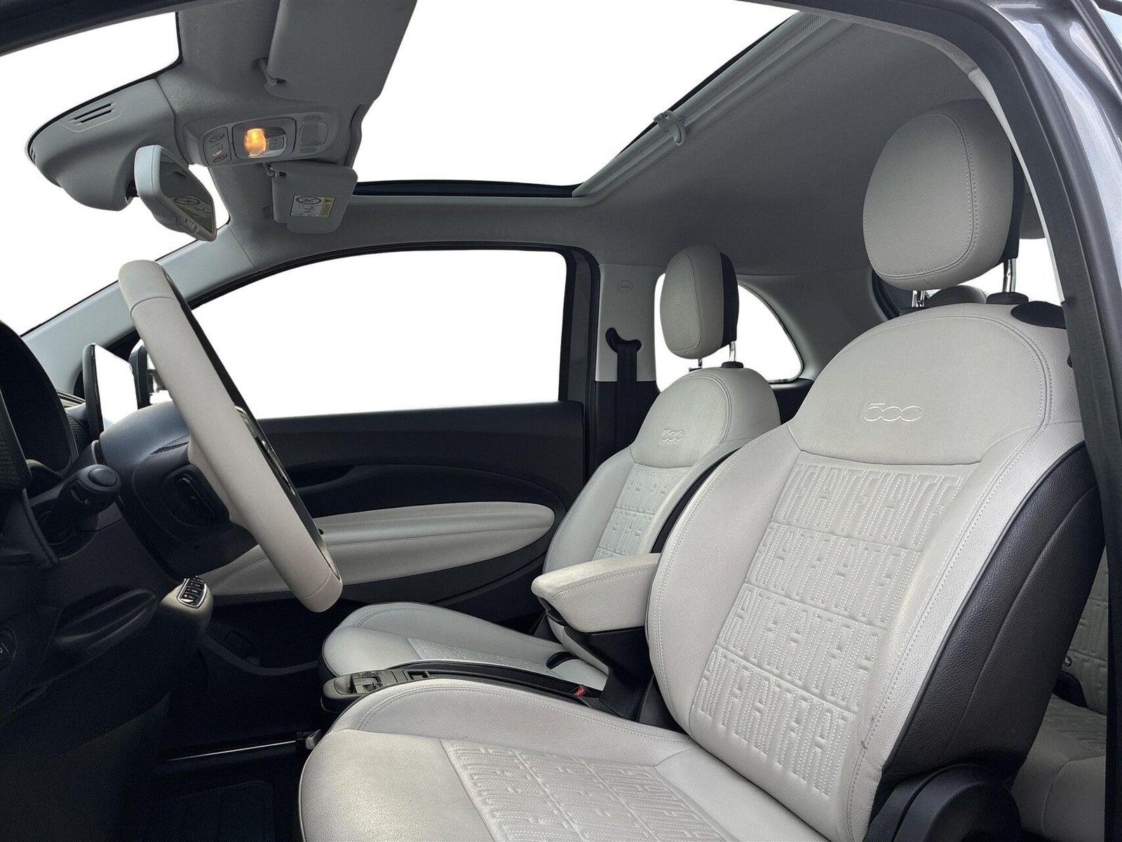 Fiat 500e's innovative design og exceptionelle køreegenskaber er ledsaget af en række avancerede sikkerhedsfunktioner som automatisk nødbremsesystem og blindvinkelassistent. Indvendigt finder du komfort med en læderkabine, glastag og højdejusterbart førersæde, der sikrer en optimal køreoplevelse.